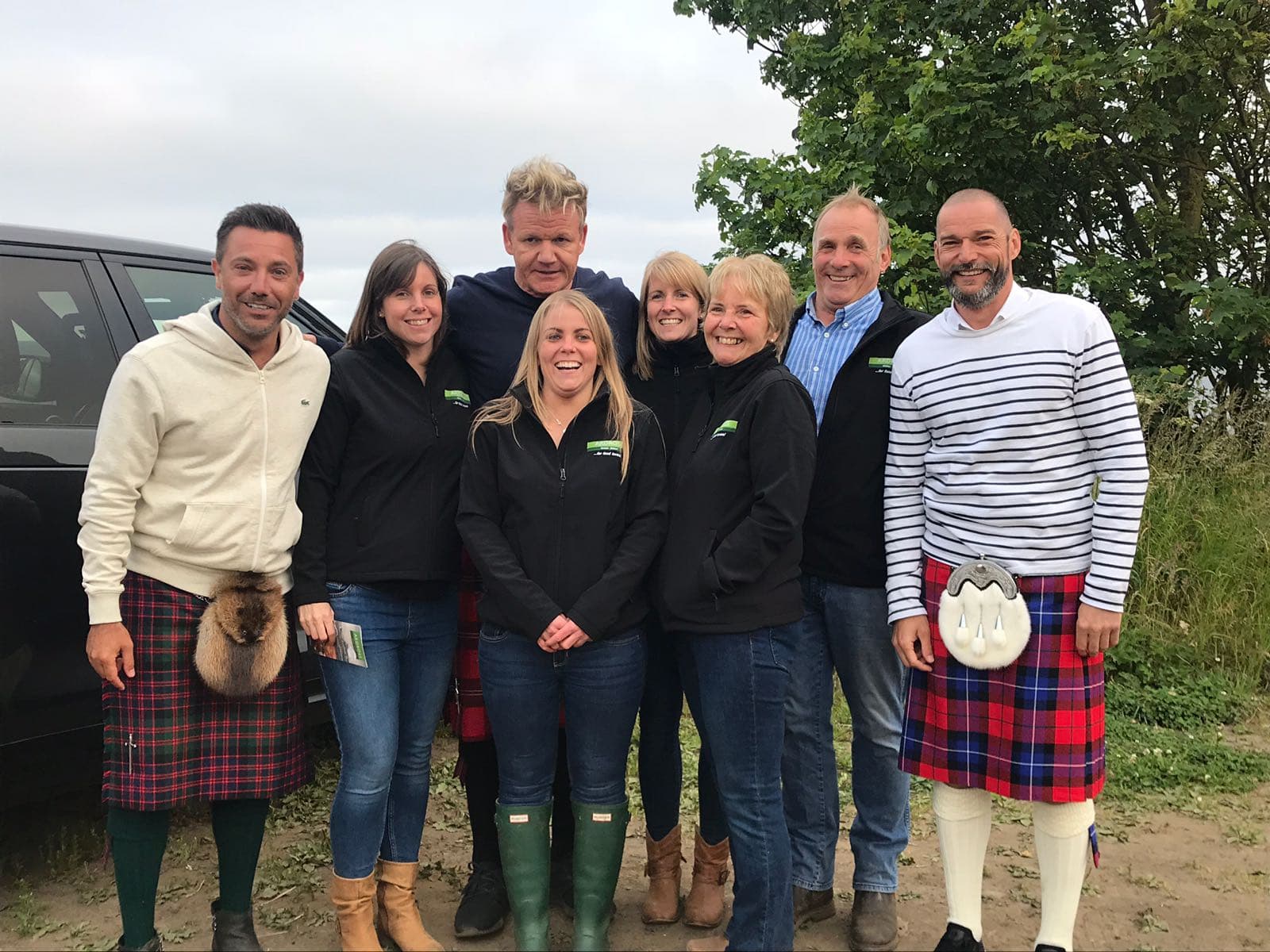 2018 was an exceptionally hot summer, perfect for filming Scotland. Having spent time on the west coast searching for hand dived scallops Gordon, Gino and Fred then drove east and took part in the Ceres Highland Games before coming to our farm in search of beef. It was a long, hot summer with very little rain. Dad started to worry that we were going to run out of grass for the cattle, when they eventually came to film. However, true to form it was cold, damp and the haar had arrived when they visited us. The first we knew of them arriving was when Gordon Ramsay strode through the curtain at the back of the shop and announced himself. Thereafter came a day of hilarity, giggles, silliness and obviously a lot of swearing!
